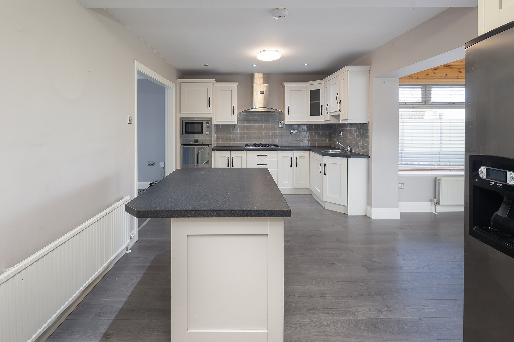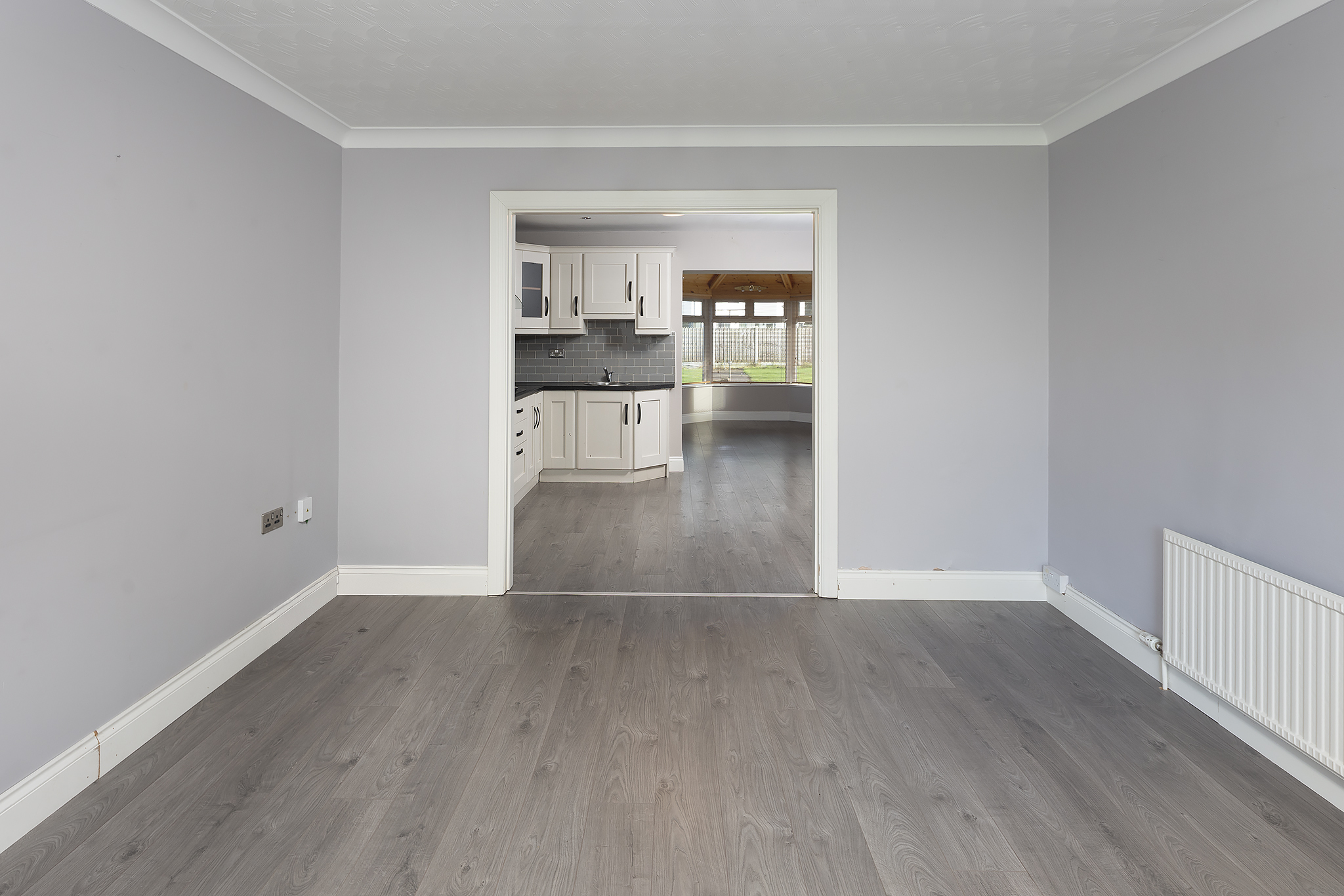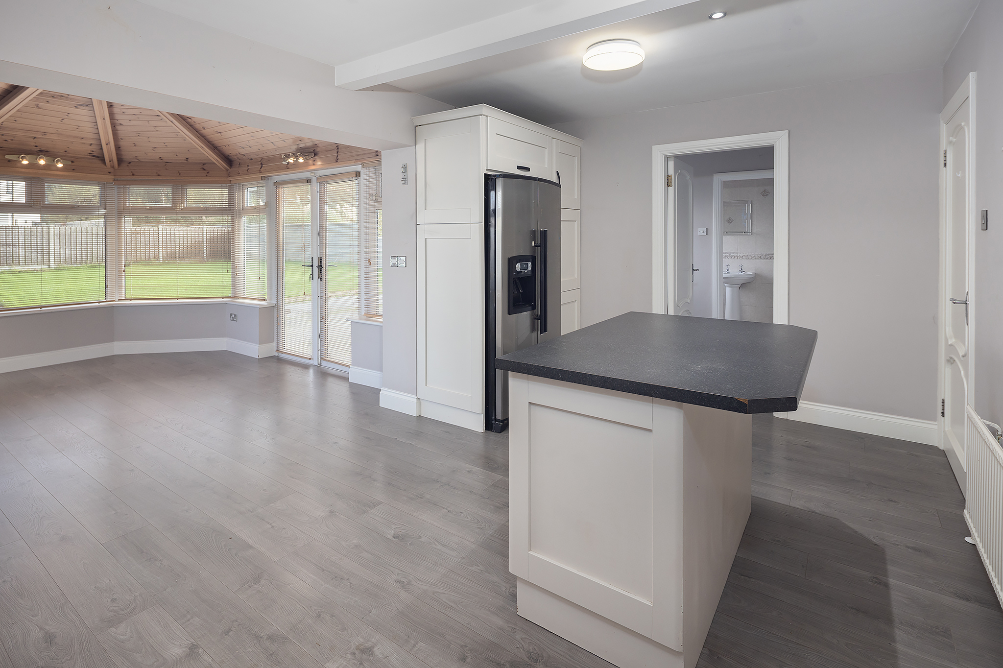 The ground floor boasts a well-planned and generous layout, beginning with a welcoming porch and a wide entrance hallway that provides access to all main living areas. The sitting room opens directly into the fitted kitchen and dining room, creating a wonderful flow between the main living spaces—ideal for both family life and entertaining. The fully integrated kitchen and dining area features sleek granite worktops, fitted appliances, and ample storage. It opens seamlessly onto a bright conservatory, which in turn leads to the rear garden—enhancing the sense of space and natural light throughout.