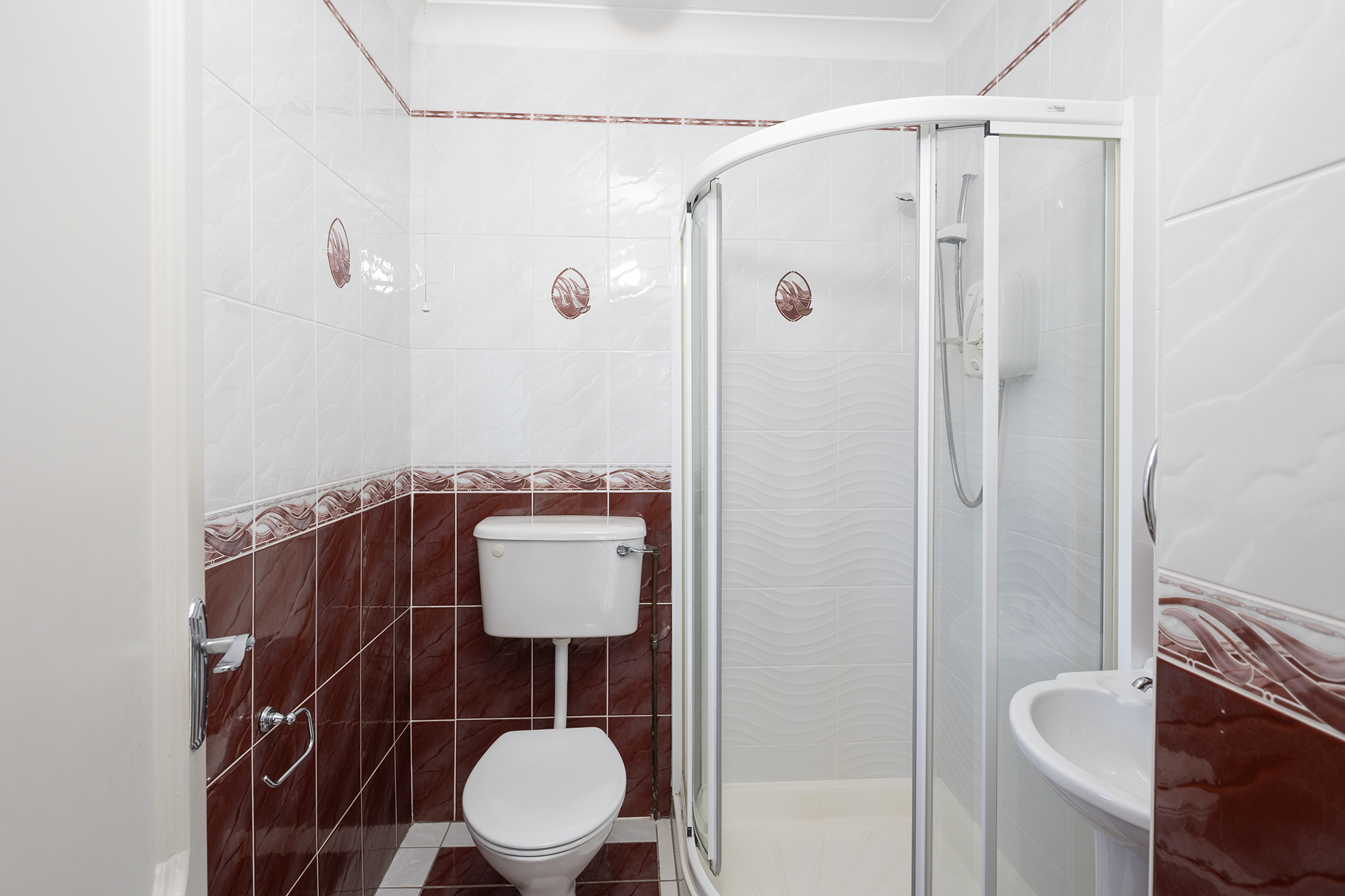 Main Bathroom, fully tiled. 10’3” x 6’7”